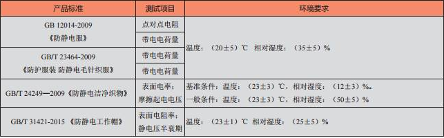 表 1 為相關(guān)產(chǎn)品標(biāo)準(zhǔn),紡織品抗靜電測(cè)試對(duì)環(huán)境的要求比較嚴(yán)格,這是因?yàn)闇貪穸葘?duì)抗靜電的指標(biāo)影響比較大,且直接影響測(cè)試結(jié)果的準(zhǔn)確性和可重復(fù)性。因此,通常需要在滿足測(cè)試條件要求的恒溫恒濕實(shí)驗(yàn)室進(jìn)行測(cè)試。GB/T 12703《紡織品 靜電性能的評(píng)定》提供了 7 種不同的測(cè)試方法,而這些不同的測(cè)試方法所獲得的測(cè)試結(jié)果之間一般沒有直接關(guān)系。在某些抗靜電產(chǎn)品的測(cè)試中,客戶要求采用 GB/T 12703 中兩種以上的測(cè)試方法來檢測(cè)產(chǎn)品質(zhì)量。而兩種方法測(cè)出的數(shù)據(jù)可能會(huì)出現(xiàn)相互矛盾現(xiàn)象,無法判定其抗靜電性能是否符合要求。例如:抗靜電紡織品通常通過在織造過程中嵌入金屬導(dǎo)電纖維獲得。這些導(dǎo)電材料通常在成品布上顯現(xiàn)條或格子狀樣式。對(duì)于此類產(chǎn)品,有的客戶要求使用電荷面密度和靜電壓半衰期同時(shí)考核抗靜電性能,會(huì)出現(xiàn)電荷面密度很低符合技術(shù)指標(biāo)要求,但靜電壓半衰期降不下來的情況。又如,單面覆膜產(chǎn)品采用靜電壓半衰期測(cè)試抗靜電性能時(shí),有金屬覆膜面測(cè)試的電壓、半衰期都顯示零,符合技術(shù)指標(biāo)要求;而反面卻不能達(dá)到抗靜電技術(shù)要求。因此,紡織品抗靜電性能的評(píng)價(jià)應(yīng)根據(jù)面料性質(zhì)的不同而采用不同的測(cè)試方法。應(yīng)根據(jù)不同的行業(yè)需求及防靜電織物使用的環(huán)境,正確選擇適合的產(chǎn)品標(biāo)準(zhǔn)和檢測(cè)方法。