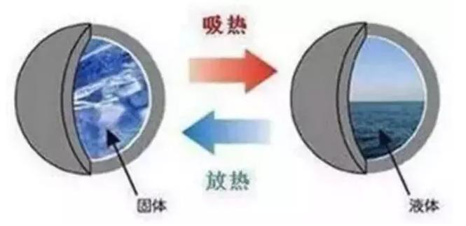 固-液相變儲能材料在溫度高于材料的相變溫度時,吸收熱量,物相由固態(tài)變成液態(tài);當(dāng)溫度下降至低于相變溫度時,物相由液態(tài)變成固態(tài),放出熱量。 該過程為完全可逆過程。此類相變儲能材料成本低,相變潛熱大,相變溫度范圍較寬泛。