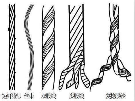 短纖紗線:對短纖紗施加一定外力,短纖從卷曲被拉直,取消外力,其可恢復(fù)彈性;而在短纖被拉直后繼續(xù)對其加力,則短纖之間會滑移或滑脫,這時取消外力就會產(chǎn)生不可恢復(fù)變形。