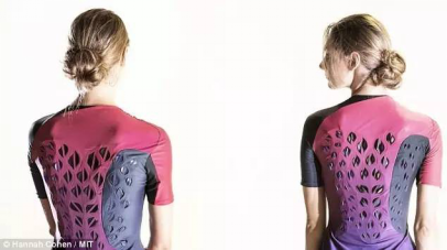 當穿戴者身體熱時,“通風口”將打開,這樣可以使空氣循環(huán),幫助排出汗液,同時降低體溫;當身體溫度降下來之后,“通風口”將會關閉。而開關“通風口”的動力則來自于乳膠織物中內(nèi)置的無害微生物。