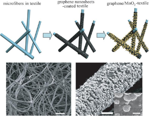 (2)開發(fā)電化學(xué)性能優(yōu)良的棉織物。以棉織物為基材、通過浸潤-干燥法和化學(xué)沉淀法,將GO和二氧化錳接枝于棉織物表面,制成復(fù)合棉織物,再經(jīng)碳化處理,改善電化學(xué)性能。