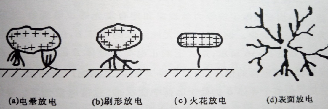 靜電放電按其發(fā)光形態(tài)大致可分為電暈放電、刷形放電、火花放電及能觀察到的沿帶電物體表面發(fā)光的表面放電四類。