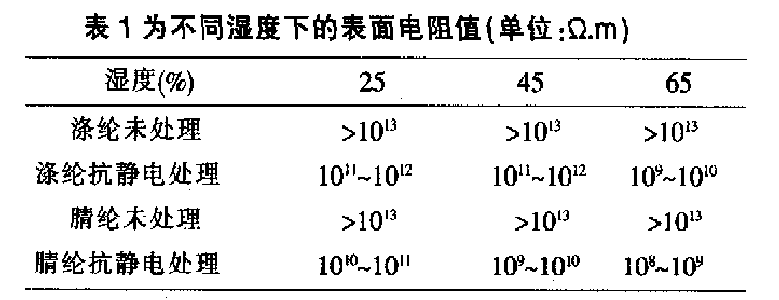 在化纖加工過程中,如滌綸、丙綸、睛綸和錦綸等,采用上抗靜電油劑的辦法來消除靜電的危害。其作用機理是提高織物回潮率、降低絕緣性,加速靜電泄漏。因此在干燥環(huán)境中、或經多次洗滌后,加工效果不耐久、或不顯著,通常在普通服用織物上應用較多。非耐久性抗靜電處理的織物,它的抗靜電性能受環(huán)境溫濕度的影響較大。