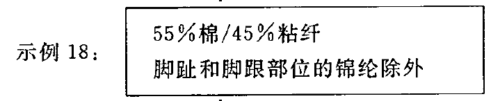6.11當(dāng)產(chǎn)品的某個部位上添加有起加固或其他作用的纖維但比例較小時,則應(yīng)標(biāo)出主要纖維的名稱及其含量,并說明包含添加纖維的部位,以及添加的纖維名稱(見示例18)。