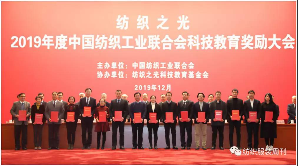 12月6日下午"紡織之光"2019年度中國(guó)紡織工業(yè)聯(lián)合會(huì)科技教育獎(jiǎng)勵(lì)大會(huì)在莊嚴(yán)的北京人民大會(huì)堂隆重召開。