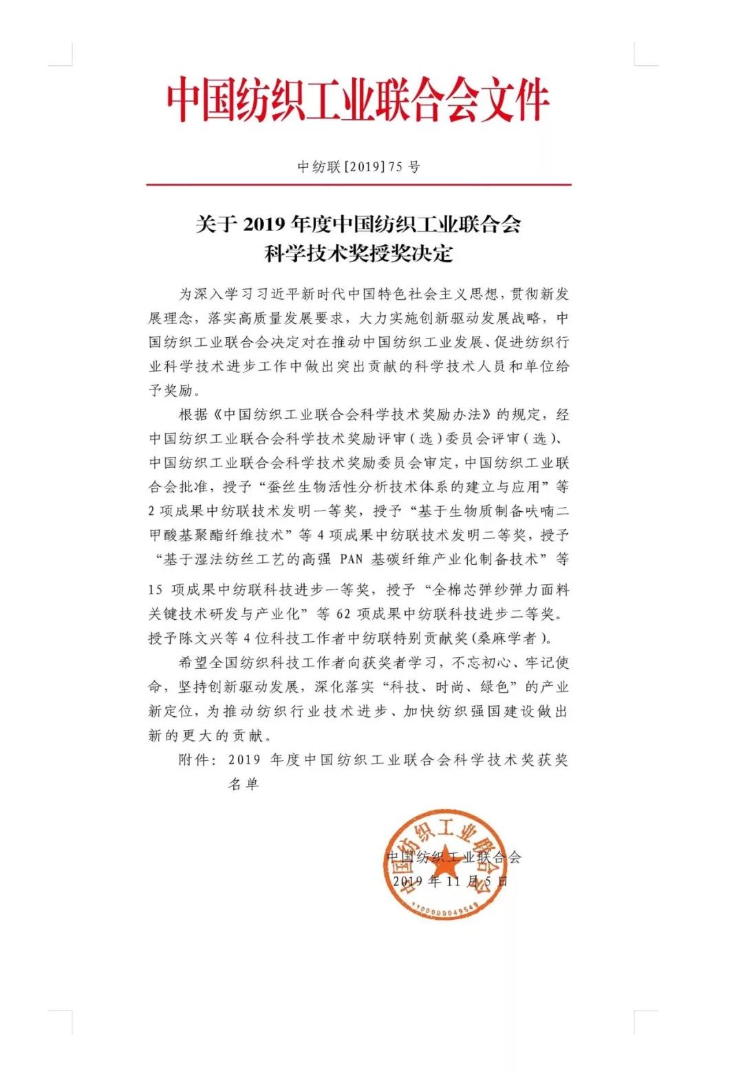 北方纖維有限公司獲 “紡織之光” 科技進(jìn)步二等獎(jiǎng)