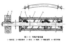 擴(kuò)幅輥表面有多條可軸向伸縮的板條(或橡膠條),每塊板條嵌裝于與軸線斜交一定角度的槽形凸輪上,輥面擴(kuò)幅板條在回轉(zhuǎn)一團(tuán)的過程中,半圈內(nèi)向輥的兩端擴(kuò)伸,另半團(tuán)內(nèi)則向輥的中央收縮,織物包繞在向輥兩端擴(kuò)伸的半圈范圍內(nèi)(由A至B包角為30。一90‘),在帶動(dòng)伸縮擴(kuò)幅輥回轉(zhuǎn)的同時(shí)、緯向獲得擴(kuò)展而去皺。