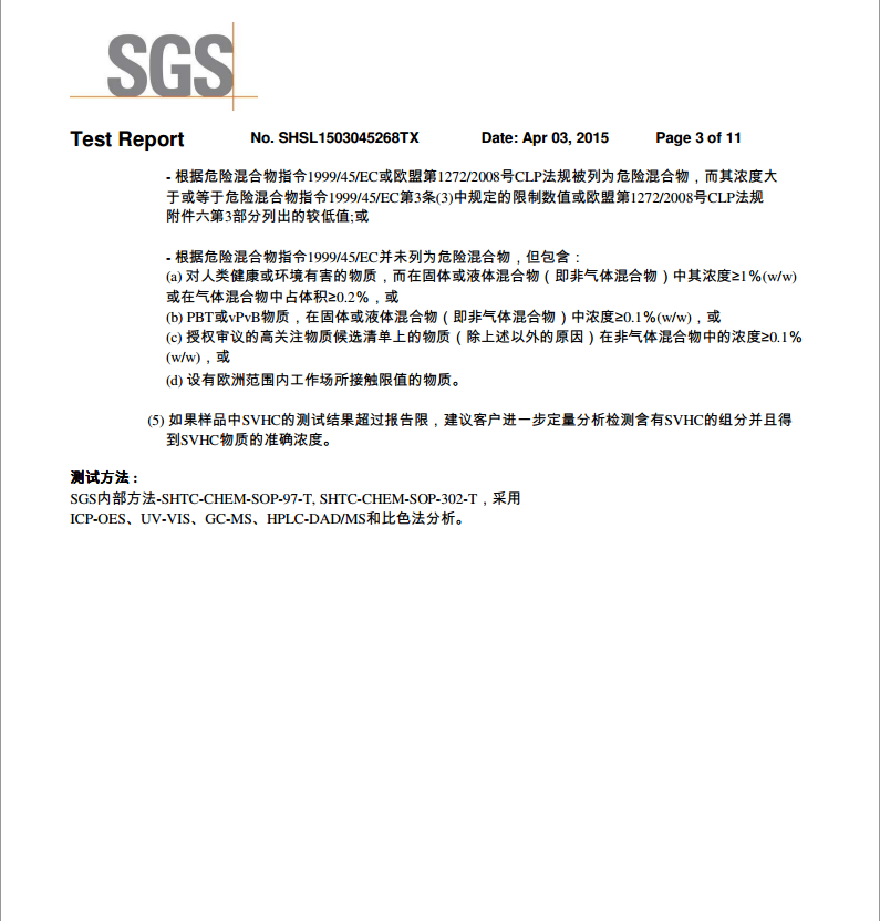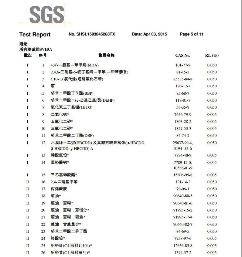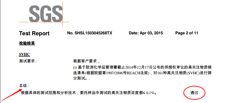 此報(bào)告顯示:本紗線不僅不含重金屬,其他高關(guān)注物質(zhì)的濃度均在0.05%,遠(yuǎn)遠(yuǎn)低于≤0.1%的標(biāo)準(zhǔn)。