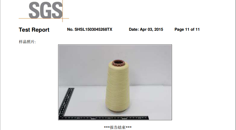 本公司于2015年3月15日送檢神盾40S抗菌紗線至通標(biāo)標(biāo)準(zhǔn)技術(shù)服務(wù)(上海)有限公司,今日收到檢測結(jié)果。